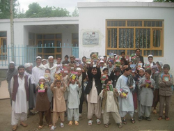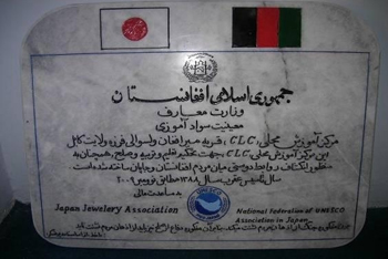 これにより、アフガニスタン・ファルザ郡に地域の識字率の向上を自的とする「コミュニティ学習センター(寺子屋)」が完成。寺子屋には「JJAの寄付による」というプレートが掲げられた。