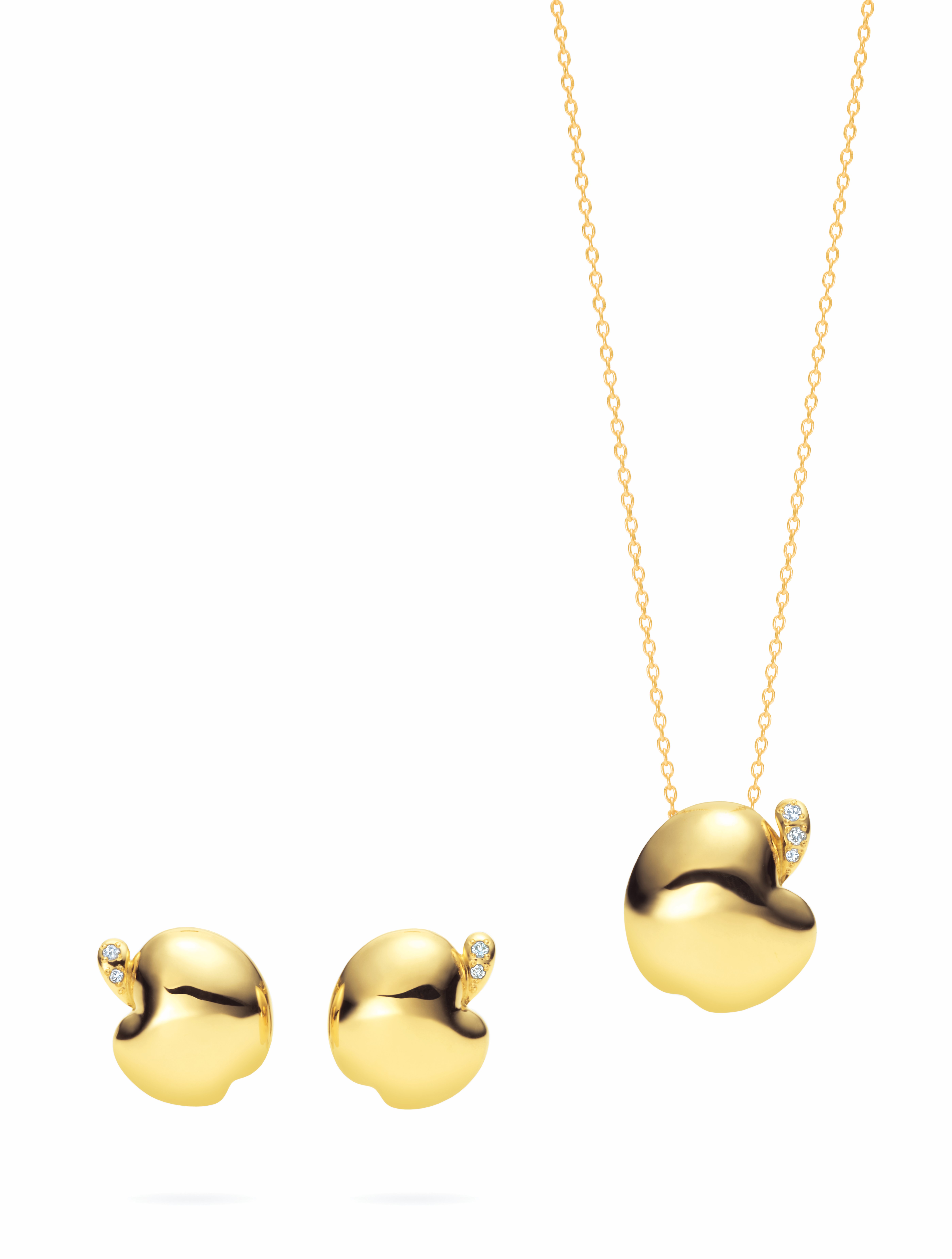 ■【LAPOMME(ラ ポム:リンゴ)】ニナ リッチの香水ライン「Nina」を象徴するリンゴモチーフは、ブランドのアイデンティティを体現する存在。ぽってりとしたリンゴのフォルムを活かしたアイコニックなジュエリーは、洗練された可愛らしさを添え大人の遊び心をくすぐるデザインとなっている。